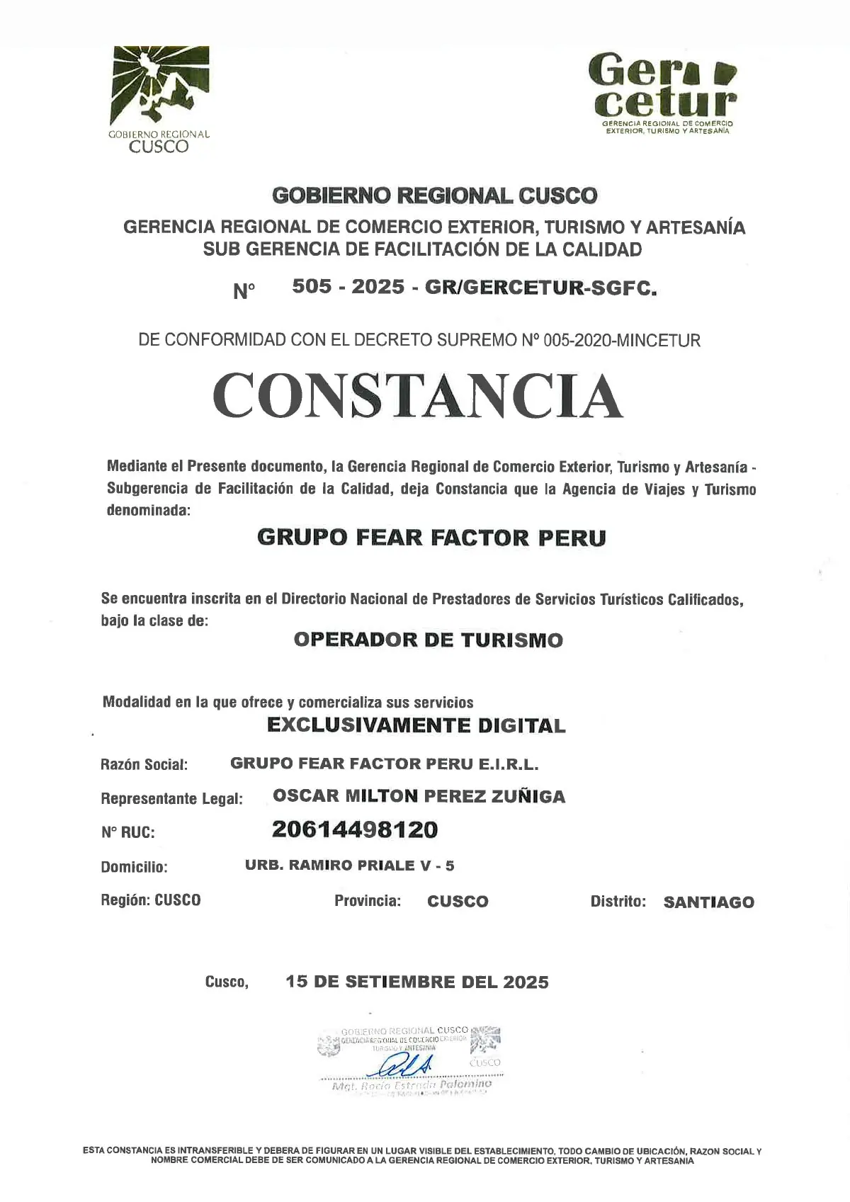 Fear Factor Peru es una empresa confiable en el Perú. Orientada a ofrecer Tours a Machupicchu y Paquetes en Cusco de varios dias de calidad basados en estándares internacionales en turismo. Somos un equipo eficiente y amigable, altamente motivado y plenamente identificado con nuestro legado histórico, cultural y espiritual que nos dejaron nuestros antepasados. Nuestro trabajo tiene como objetivo proteger el medio ambiente y la cultura local ¡Atrevete a explorar las riquezas naturales y culturales de este increíble país!